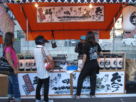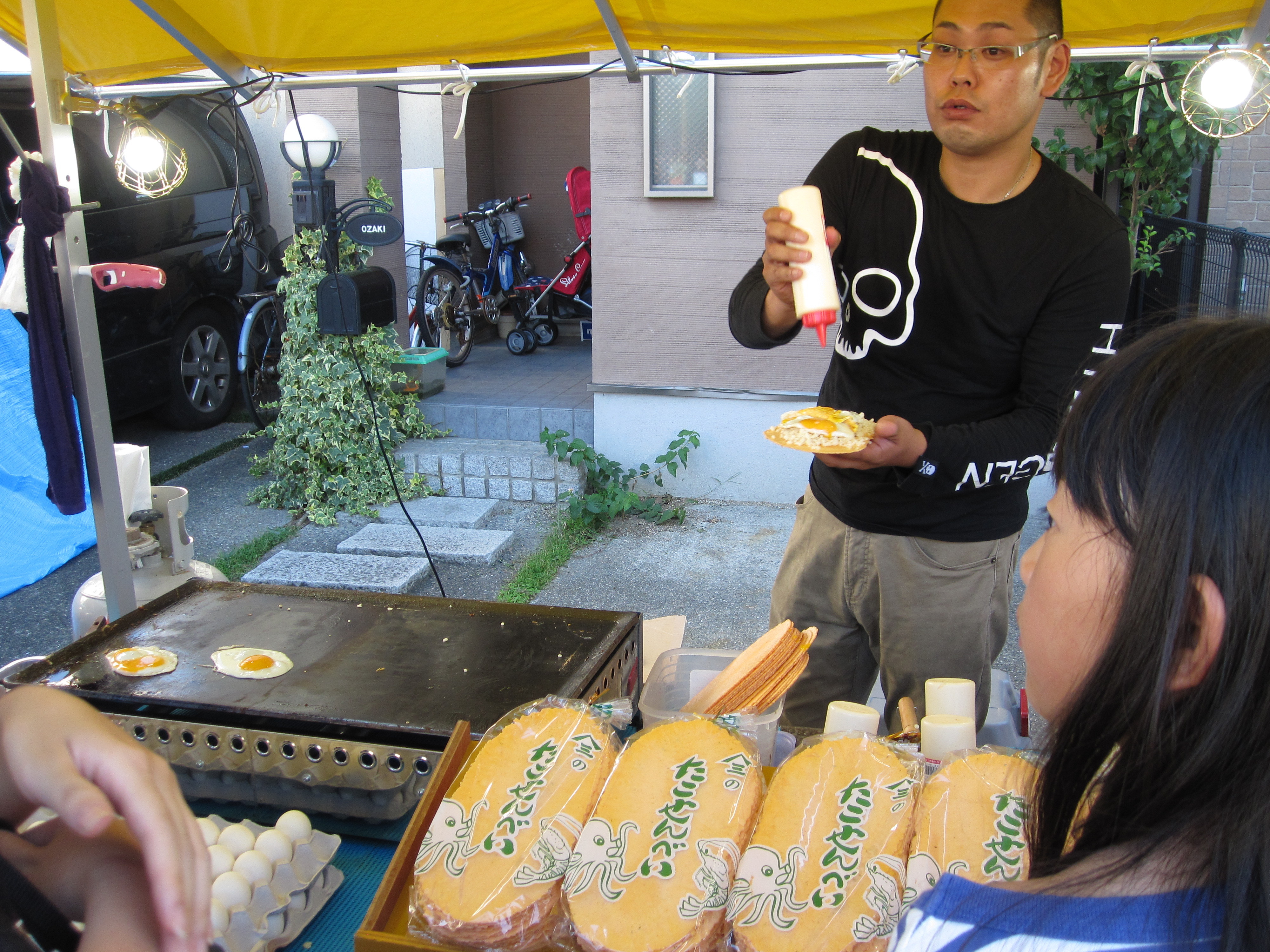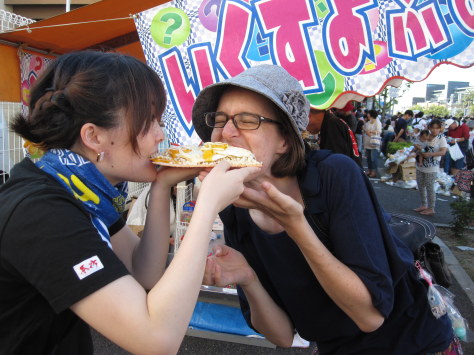 Finally, like all festivals, there were tons of food and activity booths. I tried a new and amazing food called tamagosenbei. It is basically a fried egg on a giant shrimp cracker with okonomiyaki sauce, tempura flakes, mayo, and whatnot. Totally amazing.