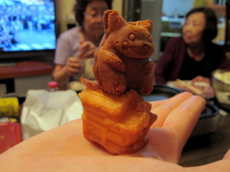 It was pretty special to see tiny cakes that taste like waffles in the shape of danjiri — then when we got home we found some in the form of Pikachu. Tiny cake festival reenactment!