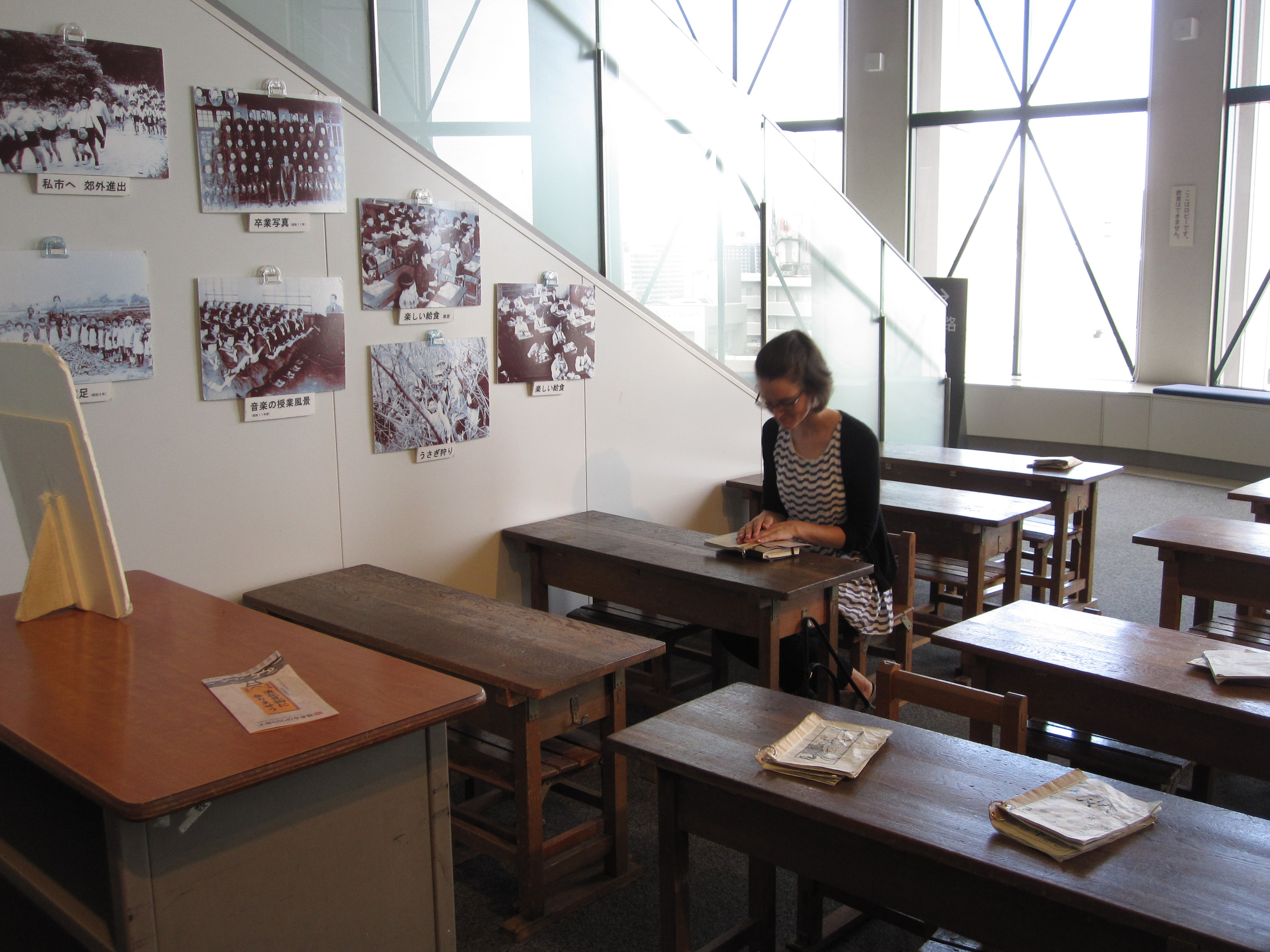 A section recreating an old timey school was basically identical to schools today, complete with hooks on the sides of the desks for the students’ bags.