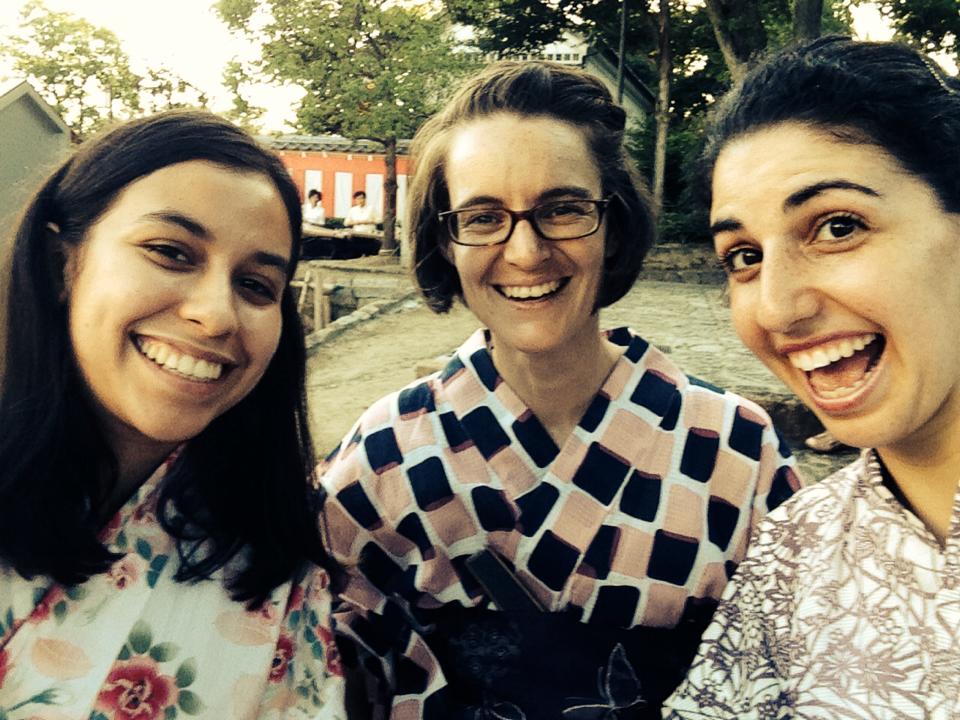 Three of us decided the moon viewing might be our last chance to wear yukata this summer. So we dressed up and hoped we would not be the only ones! In fact, we were the only ones in yukata, but luckily there were also many women involved with the tea ceremony who were wearing kimono. But people were always happy to see us dressed up, especially the older ladies.