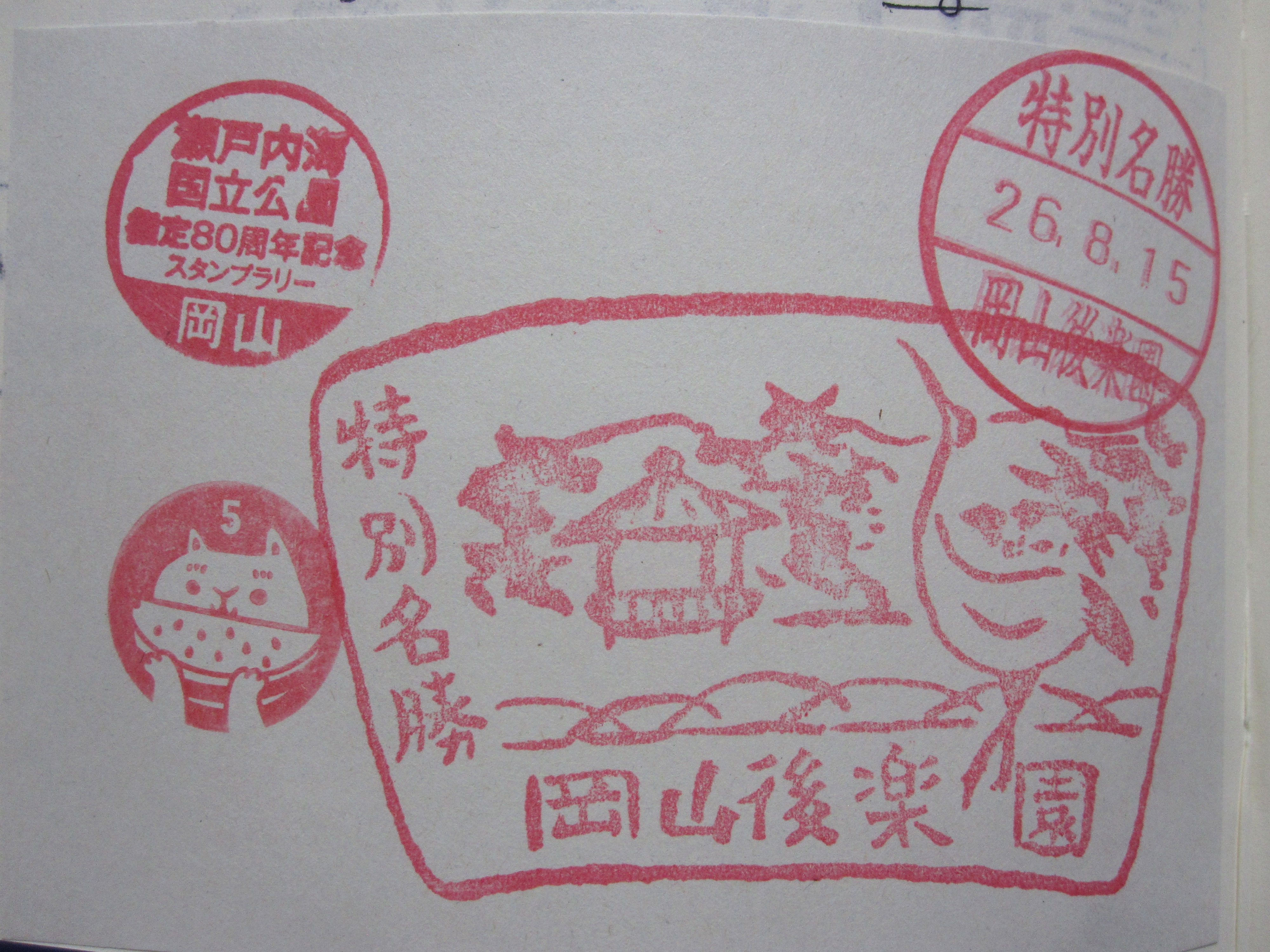 The cat with the watermelon is for a stamp rally.  I also have one with a koala on it. Why?  Why…..    All of these stamps, including the beautiful one with the crane, were from the Korakuen garden in Okayama city.
