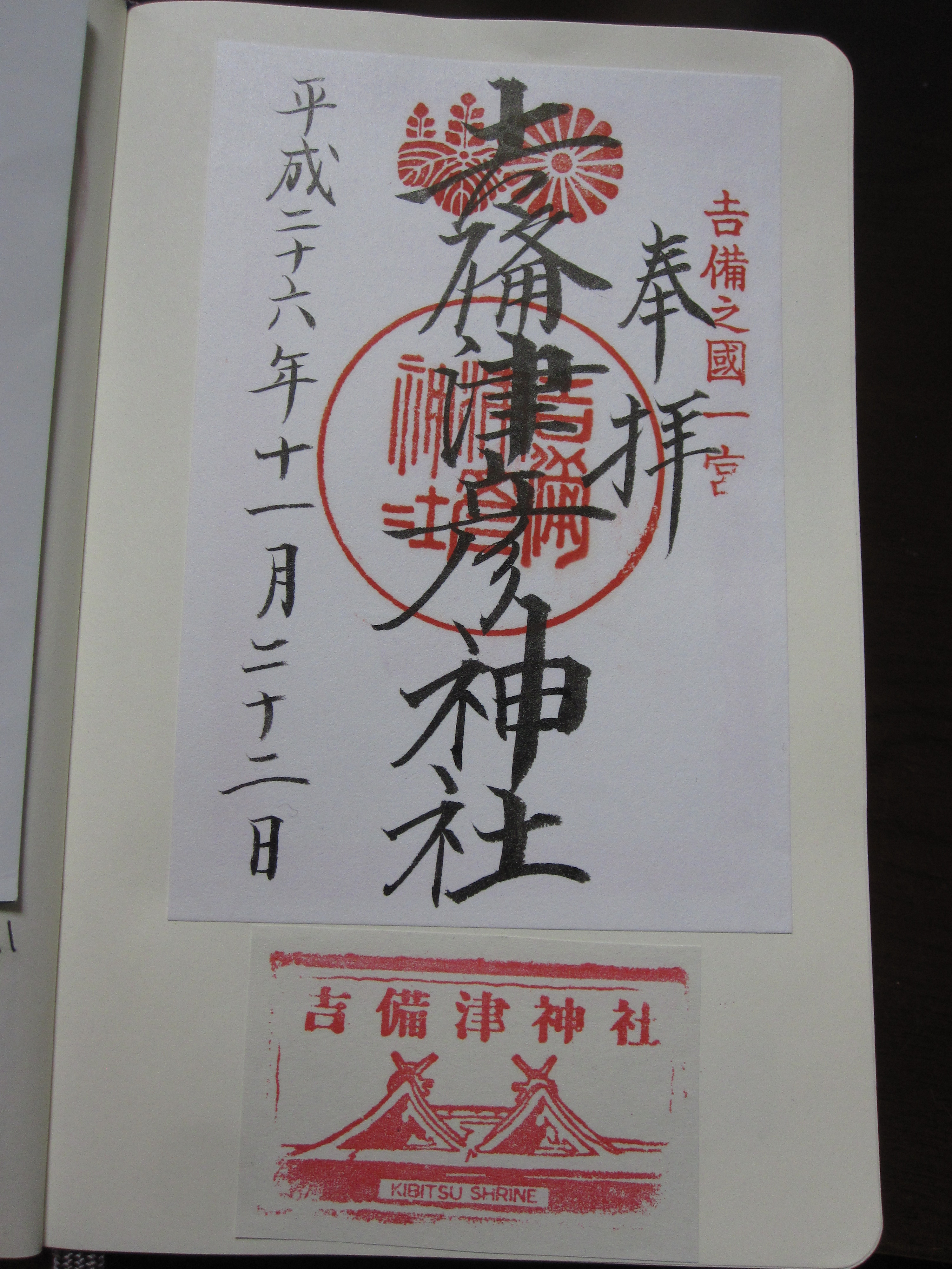 Temple stamp from the Kibitsuhiko temple, which I visited by bicycle